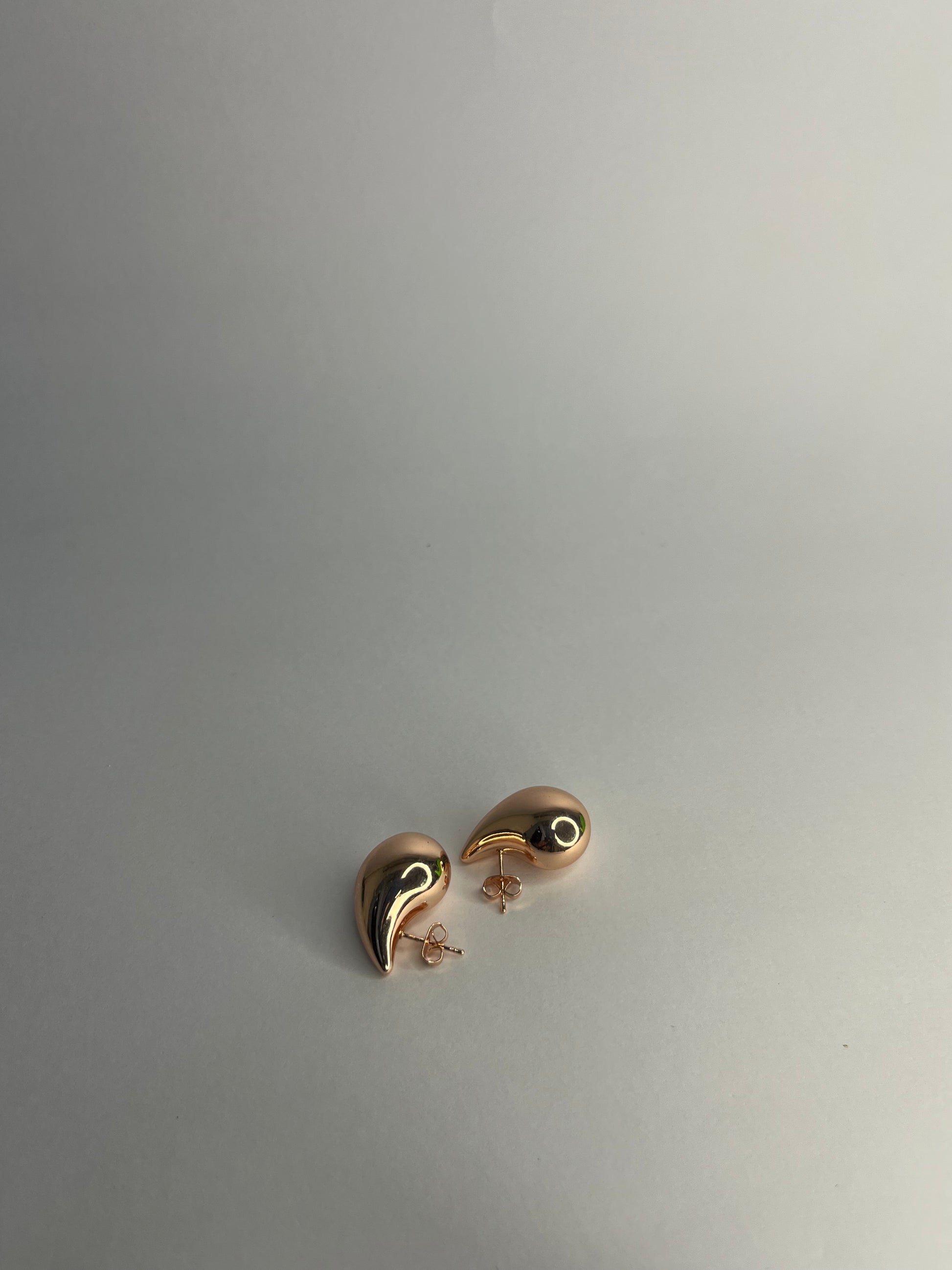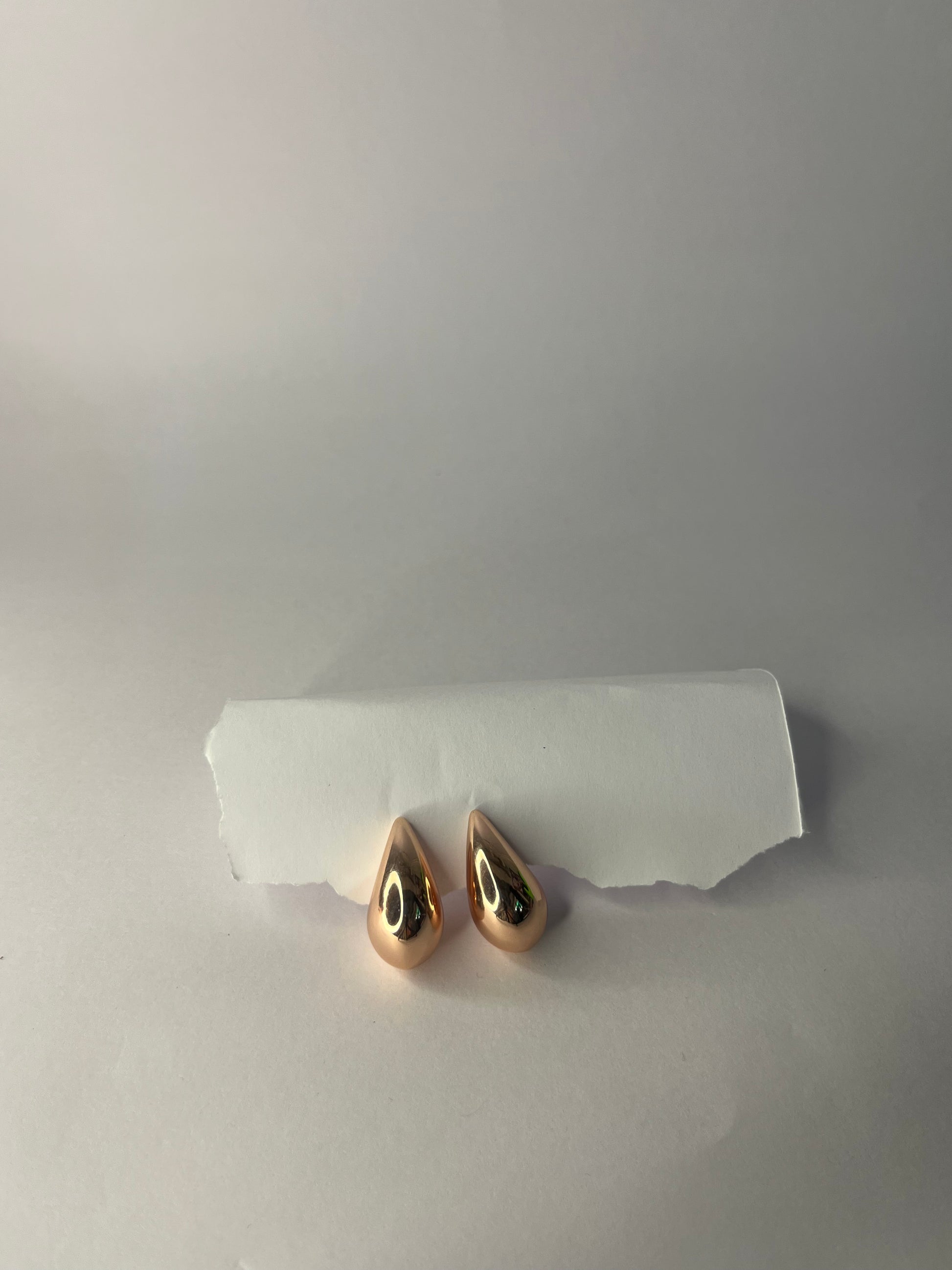 Crafted in lustrous rose gold, each earring captures and reflects light with every movement, casting a warm, radiant glow that complements all skin tones. The smooth, polished finish and organic teardrop shape embody effortless elegance, making these earrings versatile enough to transition from daytime chic to evening glamour.
