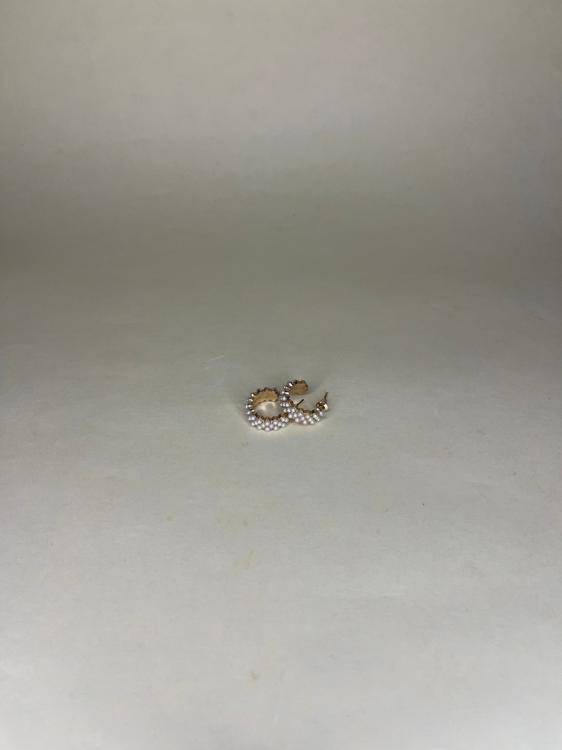 Discover the perfect marriage of classic elegance and contemporary style with these exquisite Pearl Elegance Hoops. Adorned with lustrous pearls that delicately line the golden hoop, these earrings exude timeless sophistication while maintaining a fresh, modern appeal. The pearl embellishments create a stunning visual contrast against the warm gold tone, catching light beautifully with every graceful movement.